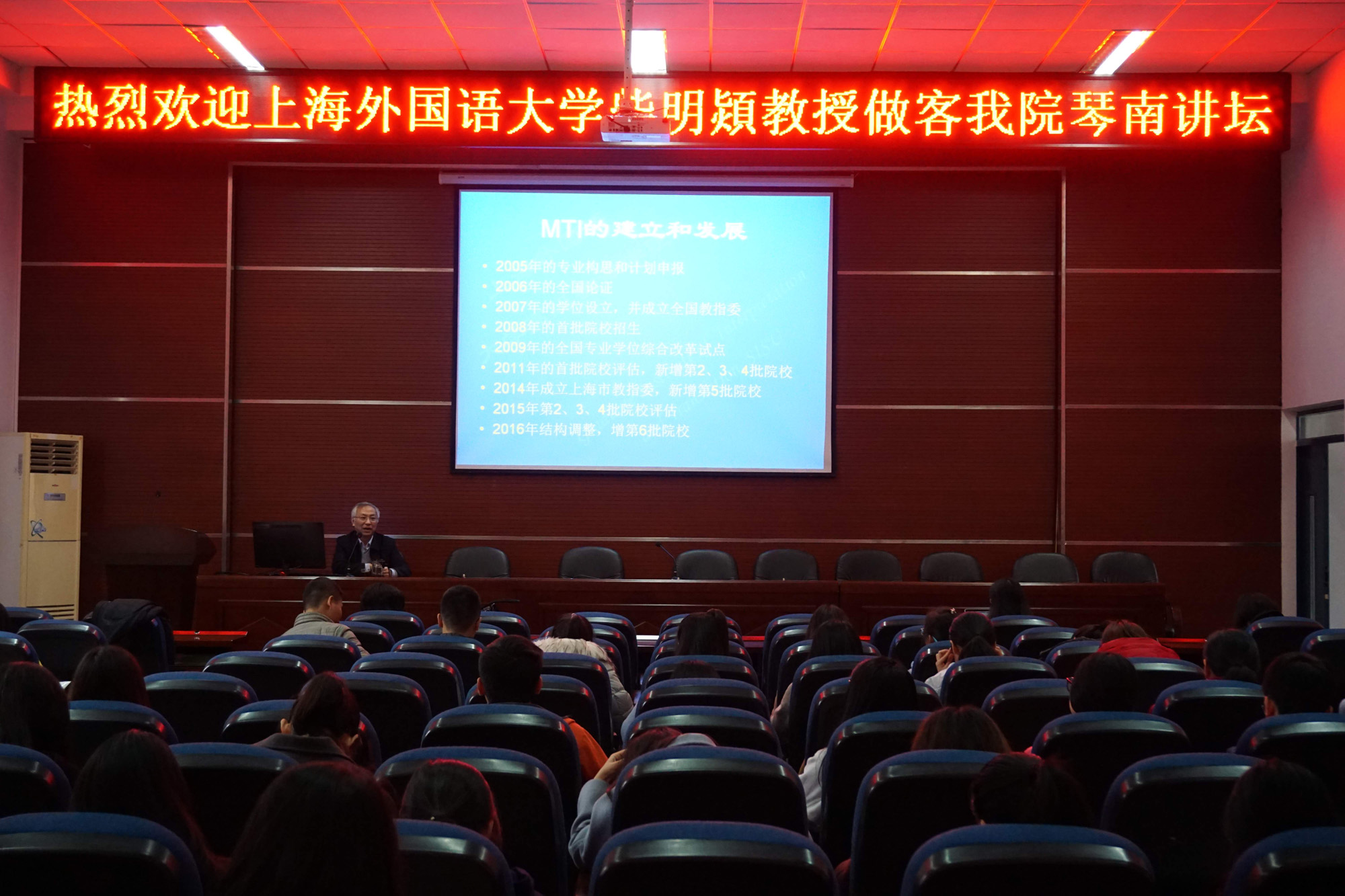 三楼大会议室带来了琴南讲坛第21讲:翻译专业现状与未来挑战。讲座由院长潘红教授主持。