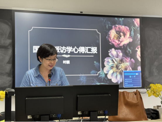 汇报会最后进入自由交流环节,现场教师与同学们就“学术方向转型”“出国访学申请流程”“科研合作经验”等问题展开热烈讨论。叶颖副教授结合自身经历,详细解答了申请节点把握、导师联系及项目准备等实际问题,鼓励教师们积极拓展国际学术视野,在全球化语境下深化外语教育与跨文化研究。