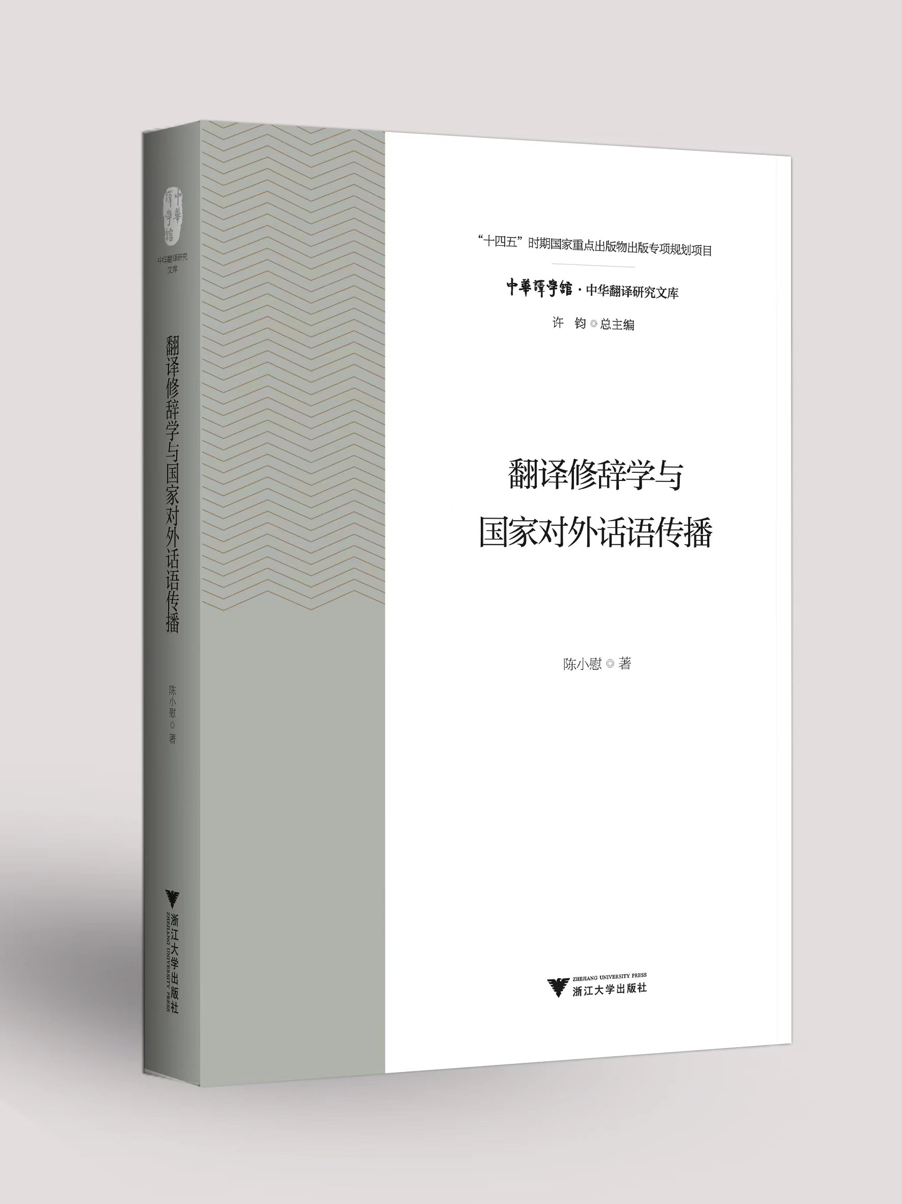 陈小慰教授撰写的专著《翻译修辞学与国家对外话语传播》由浙江大学出版社出版。该专著入选“十四五”时期国家重点出版物出版专项规划项目“中华译学馆·中华翻译研究文库”,属“十四五”时期国家重点出版图书。