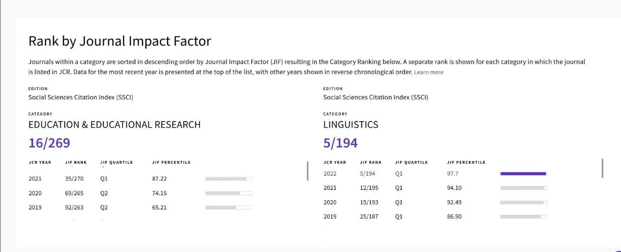 System是国际语言学和教育学研究领域的顶级刊物之一。该期刊2023年的影响因子为6,在语言学194本SSCI期刊中排名5,在教育学269本SSCI期刊中排名16。