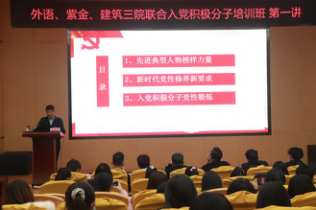 开班仪式开始前,全体起立,奏唱国歌。随后陈德铭副书记进行了开班动员,并开展题为《平凡中见伟大 细微处显精神——学党史读党章 悟思想增党性》的主题党课。三院共计近120名入党积极分子到场参加。