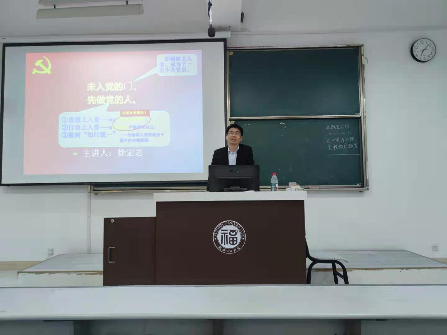 分党校入党积极分子培训班(铜盘校区)第一讲党课教学在我校铜盘校区A110教室顺利举行。学生工作部副部长徐宏志老师为同学们开展第一讲《为入党的门,先做党的人》主题培训。