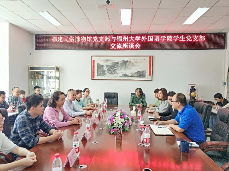 学生党支部在学院208会议室展开座谈交流会。福建民俗博物馆馆长朱方芳女士、院党委副书记王三强,院团委书记林昕,院辅导员唐斌湖,及馆党支部成员,院学生代表出席本次交流。