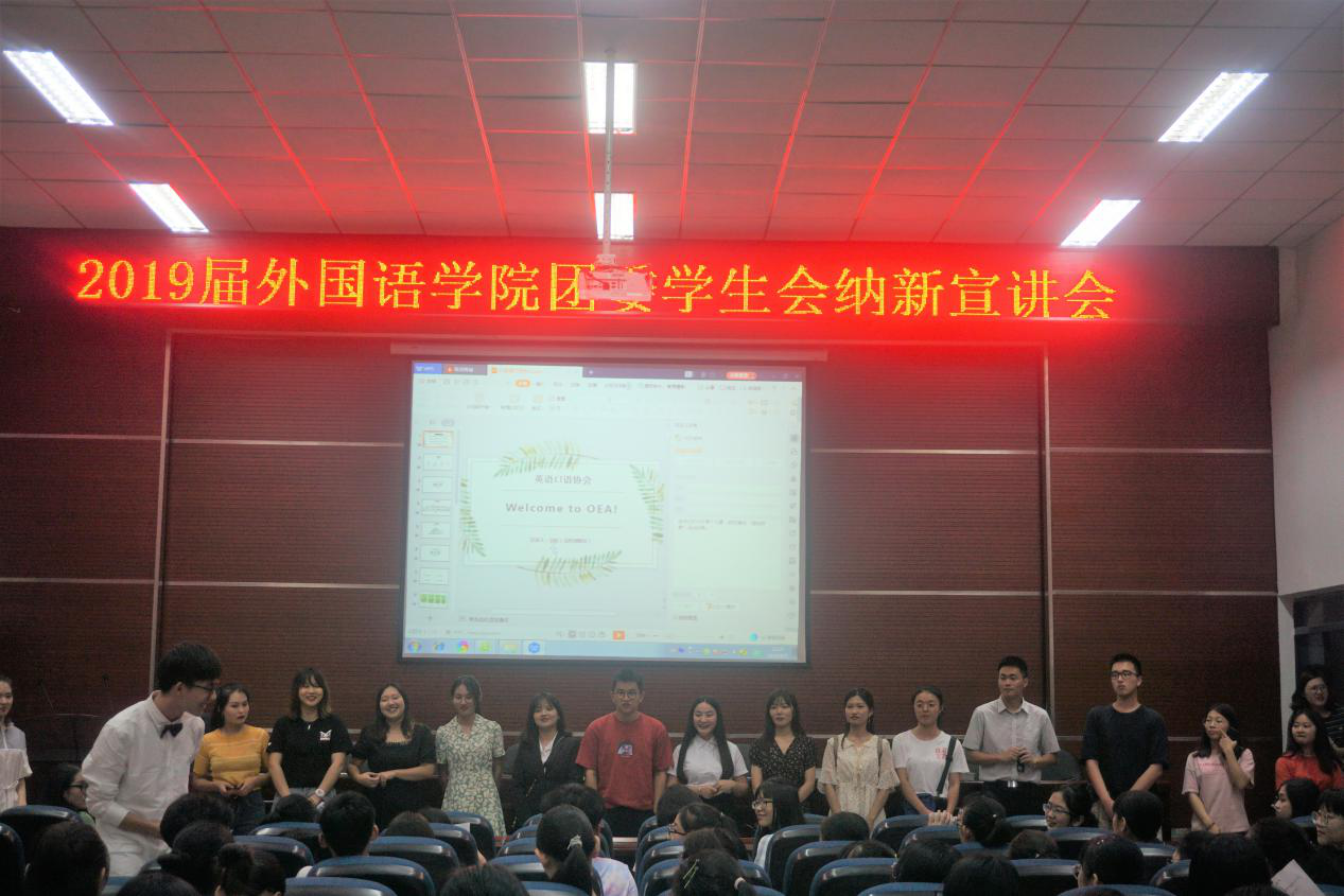 爱心支教团队、职业发展部、德国印象协会、体育部、辩论队、学术部、樱花日语爱好者协会、太鼓队、生活自律部、宣传部、组织部、英语口语协会的各社团协会的负责人轮流上台向2019级新生们宣讲本社团协会的内容、福利、往期活动等等。让新生们感受到大学生活的丰富多彩,也为接下来的学院部门纳新做好了充分准备。