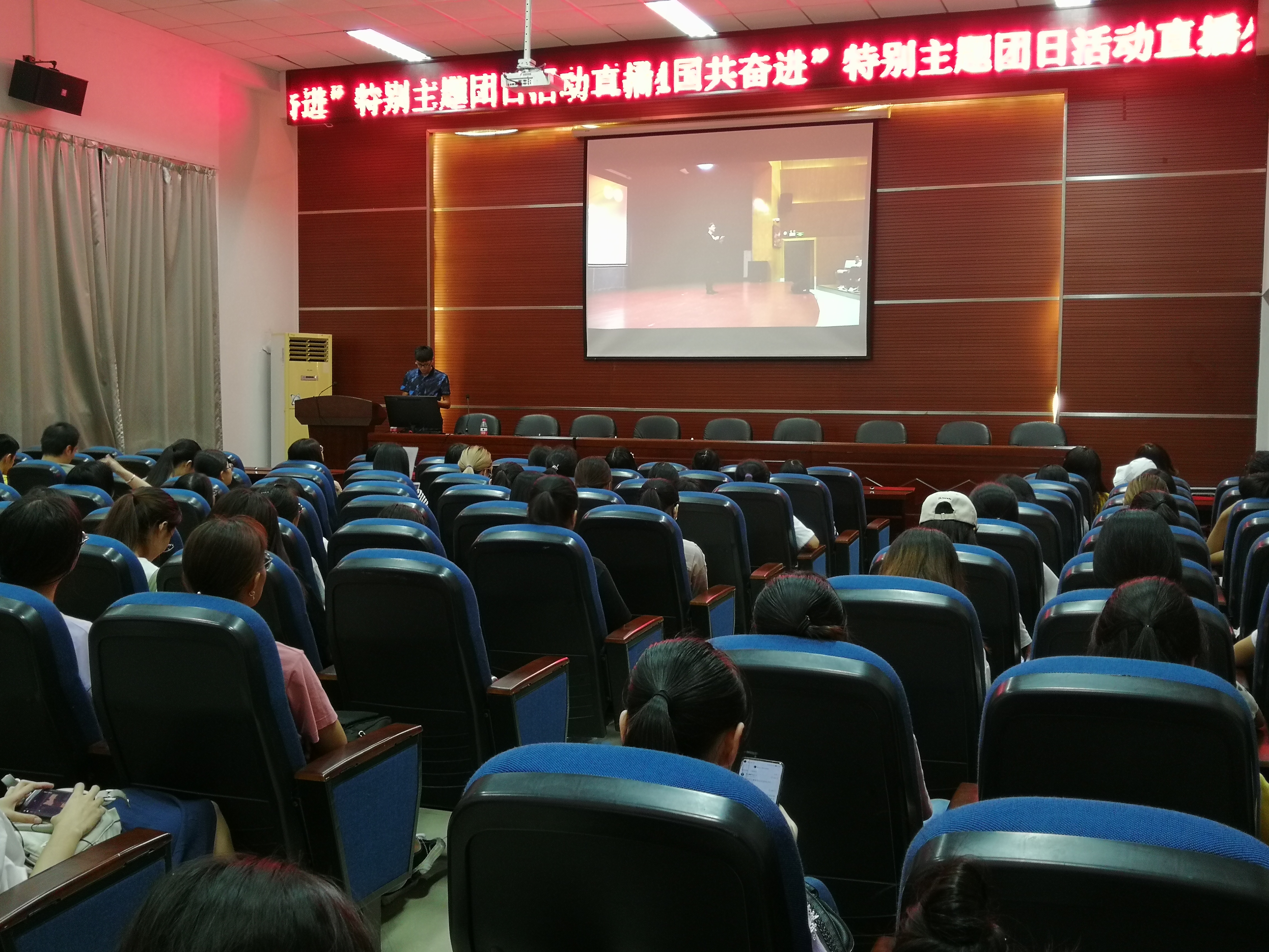 报告厅组织观看“我与祖国共奋进”特别主题团日活动直播,17、18级全体学生在辅导员的指导下共同观看本次直播。