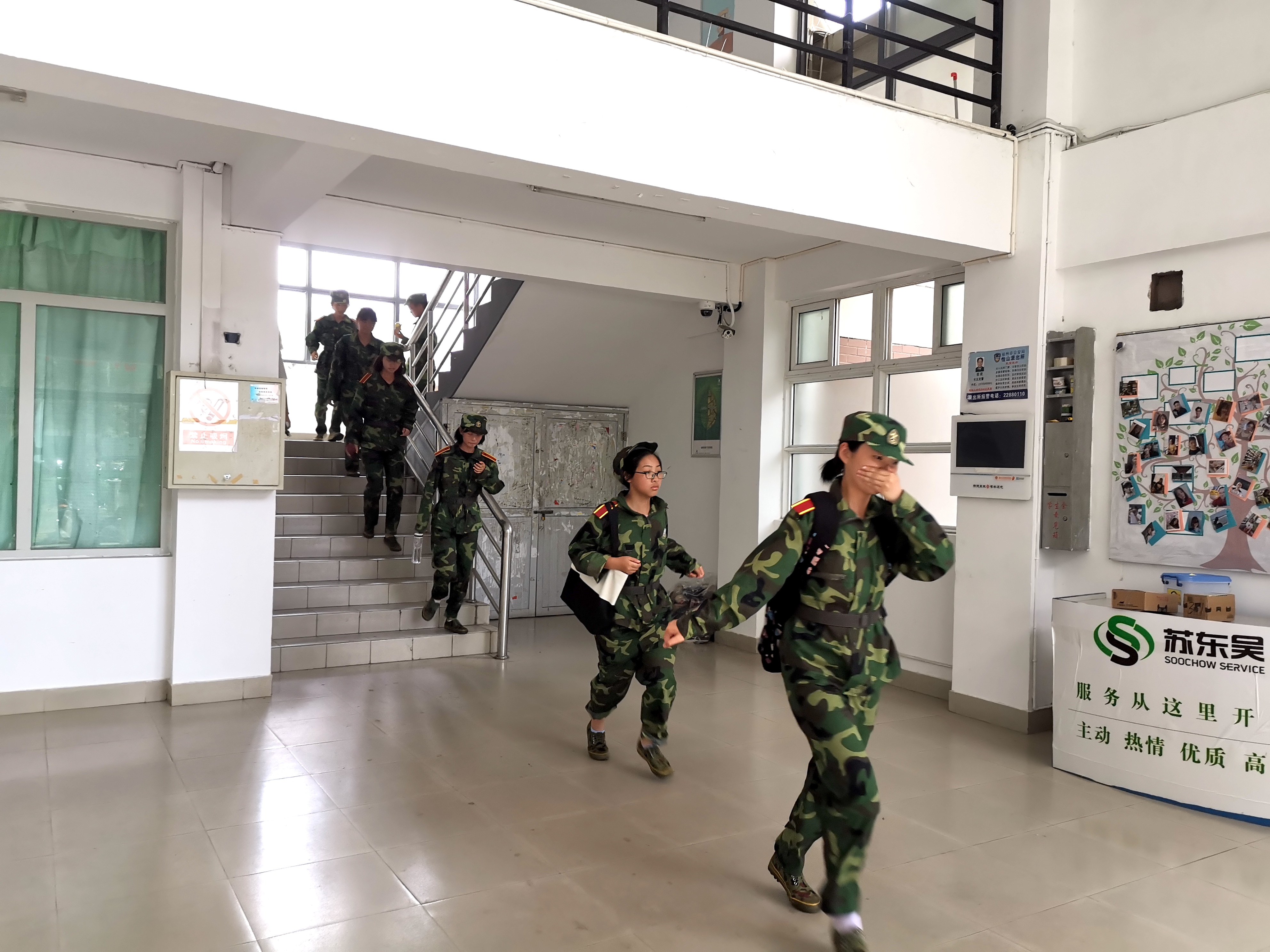 学生公寓进行新生逃生疏散演练。