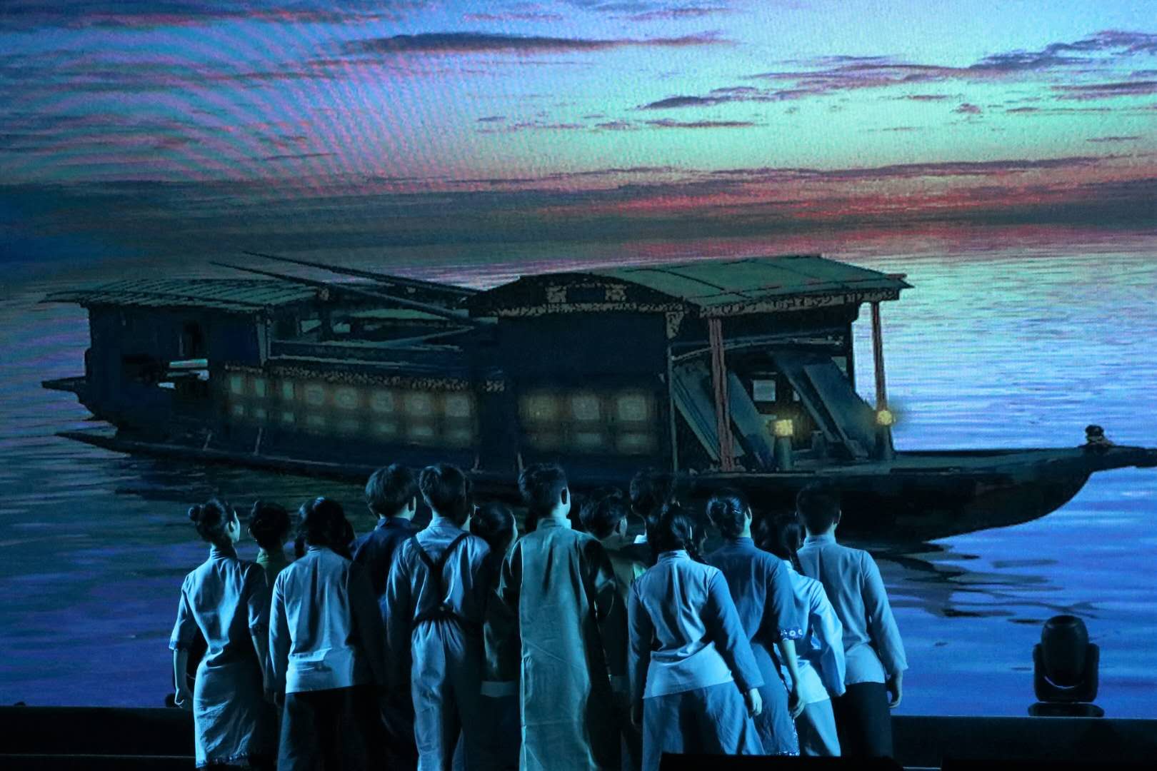 与物信学院联和组队参赛,在经历两个多月的辛苦排练后,带来作品《红船》。《红船》讲述的是建设伟大的革命事业时的故事。舞蹈以嘉兴南湖的红船为故事背景,以意象性的动作语言来表达对未来新社会所产生的憧憬;一根红绸化作希望、信仰、生命,它是星星之火,可以燎原,同时也象征伟大的红色主义事业、代表革命先辈团结的精神品质。电影天堂