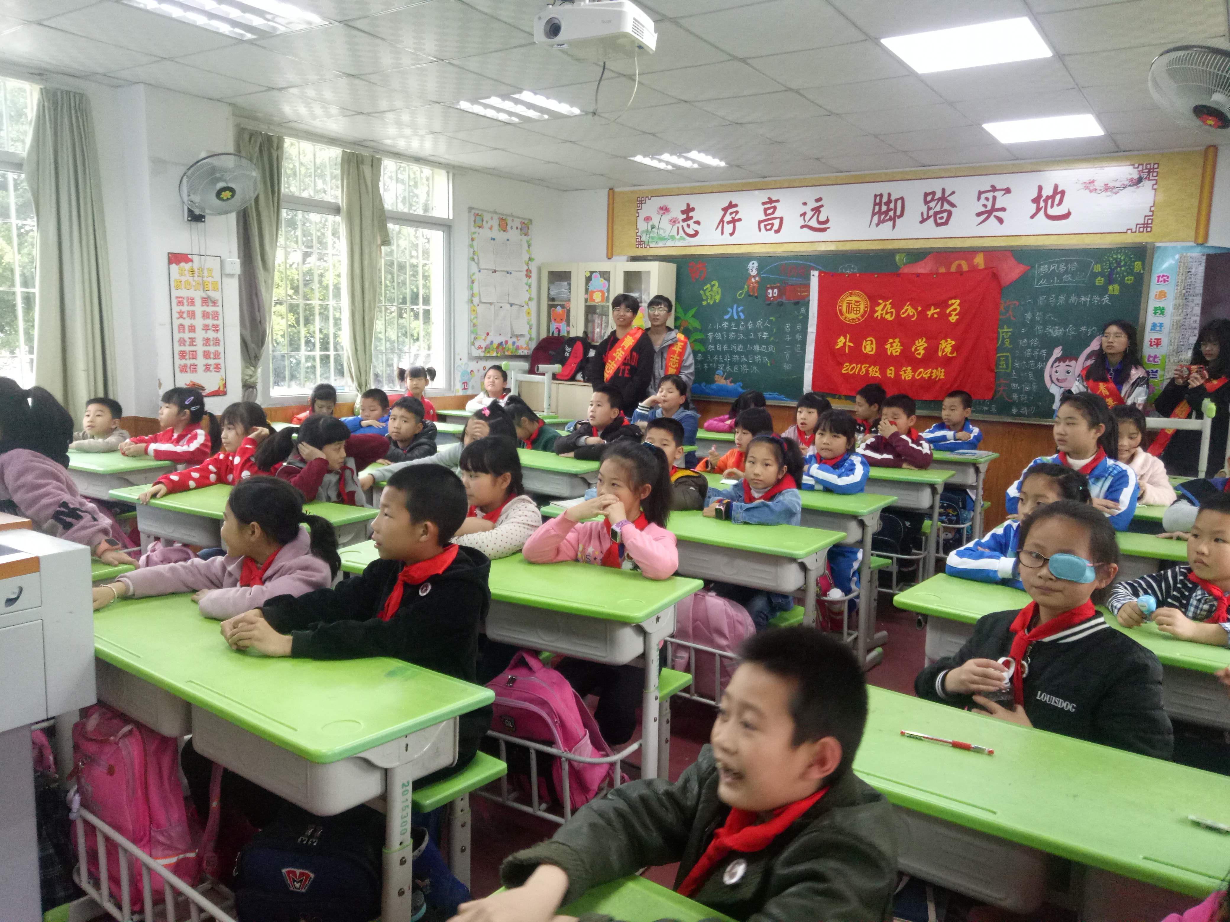青年志愿者协会与18级日语四班团支部合作,带领志愿者们走进福州冯宅中心小学,进行支教助学活动,给三年级的同学们带来了一场别开生面的“我们的国与家”文化课。