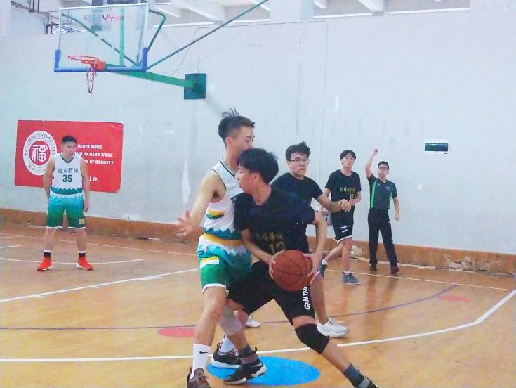 对战石油化工学院,于三区室内篮球场拉开帷幕。来自两个学院的热血男儿展开了激烈的比拼。