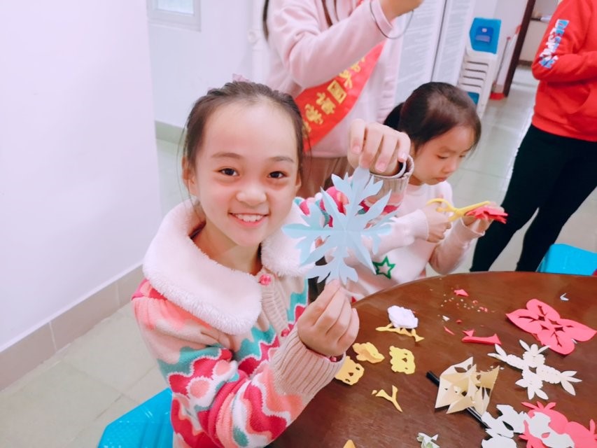 活动当天,志愿者们提前到场,精心布置场地,准备活动所需的物品,并引导小朋友们有序入场。活动正式开始时,志愿者们首先介绍了窗花的相关故事,并教授相关的基本英语词汇与句子。随后由小朋友们挑选喜欢的图案,在志愿者的帮助下剪出各式各样精美的窗花。接下来,志愿者们带领小朋友开始下一个环节:在纸扇和团扇上绘制二十四节气。小朋友们发挥自己的想象力,绘制与节气相关的图画。绘制完毕后,小朋友们开心地举起手中的作品,与志愿者一同合照。