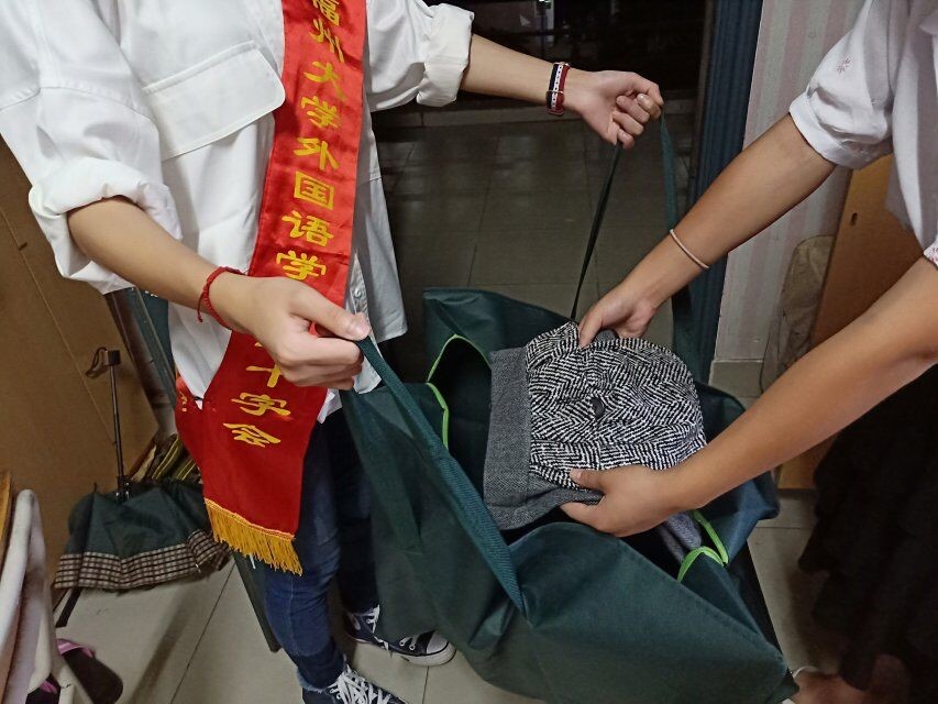 活动当天,13号楼三楼活动室早早聚集了满怀热忱的新部员,部员们在会长的带领下领取用于回收旧衣物的回收袋及红十绶带。带着期待与小紧张,红十部员们开始第一次任务。部员们三人一组,被分置到不同的楼层进行衣物回收。大一新生们收起胆怯,带着微笑礼貌地敲开一间间宿舍的门,同学们对我们的活动表示支持,纷纷拿出搁置无用的衣物鞋袜。4号楼和9号楼的同学在知晓了此次活动后,同样十分热心地表示要捐赠旧衣物。一个小时后,部员们收到了整整一大袋同学们善意提供的旧衣物。至此,“衣旧情深,爱在路上”旧衣物回收活动圆满结束。