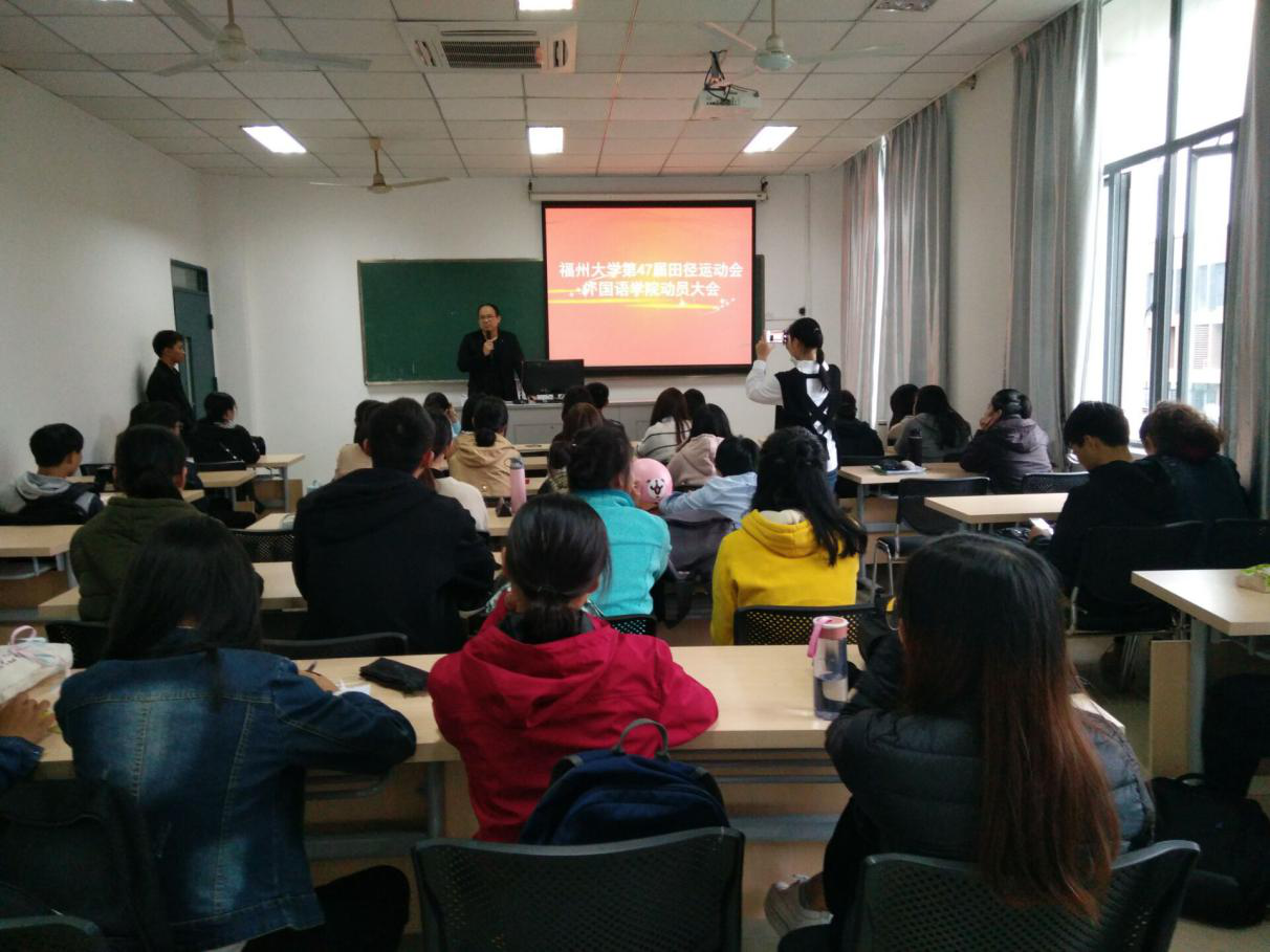 的荣光离不开每位外院学子的努力。接着,书记详细地介绍了此次校运会的情况,希望每个运动员能以最饱满的热情,昂扬的斗志参与本次比赛。此外,他还提出两点要求,一是要在训练当中注意安全;二是希望每位运动员保持良好竞技状态,赛出好成绩。其后,学生代表陈旭发表讲话,鼓励运动员们在本次校运会上赛出风格、赛出水平,以优异的成绩感染全体外院学子们,带动大家一起践行“走下网络、走出宿舍、走向操场”的承诺。最后,运动员代表单梁表达了全体运动员的决心,表明运动员们定不负众望,刻苦训练,争取在运动会上为电影天堂
