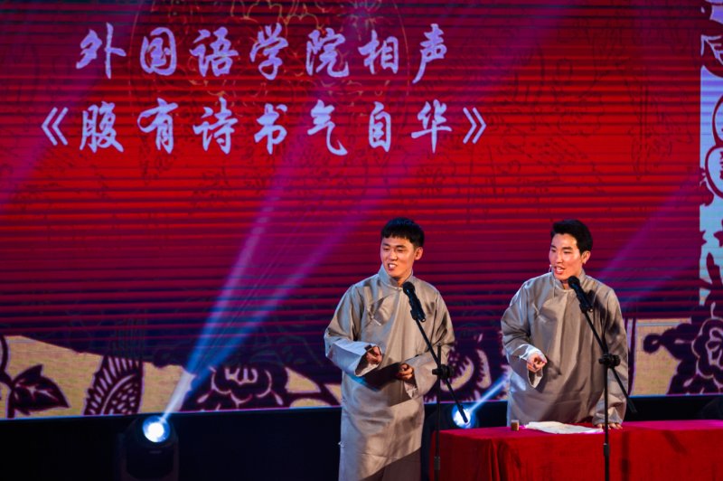 喜报!电影天堂 15级德语专业姚智誉与15级日语专业罗智权同学在电影天堂 第三十一届学生文化艺术节之相声大赛中表现出色,斩获桂冠。