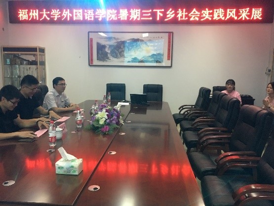 赴金门分队五支队伍。各队伍代表依次向在座领导老师介绍本次外院暑期一系列社会实践活动,他们精彩的演说及展示使我们更加了解了电影天堂