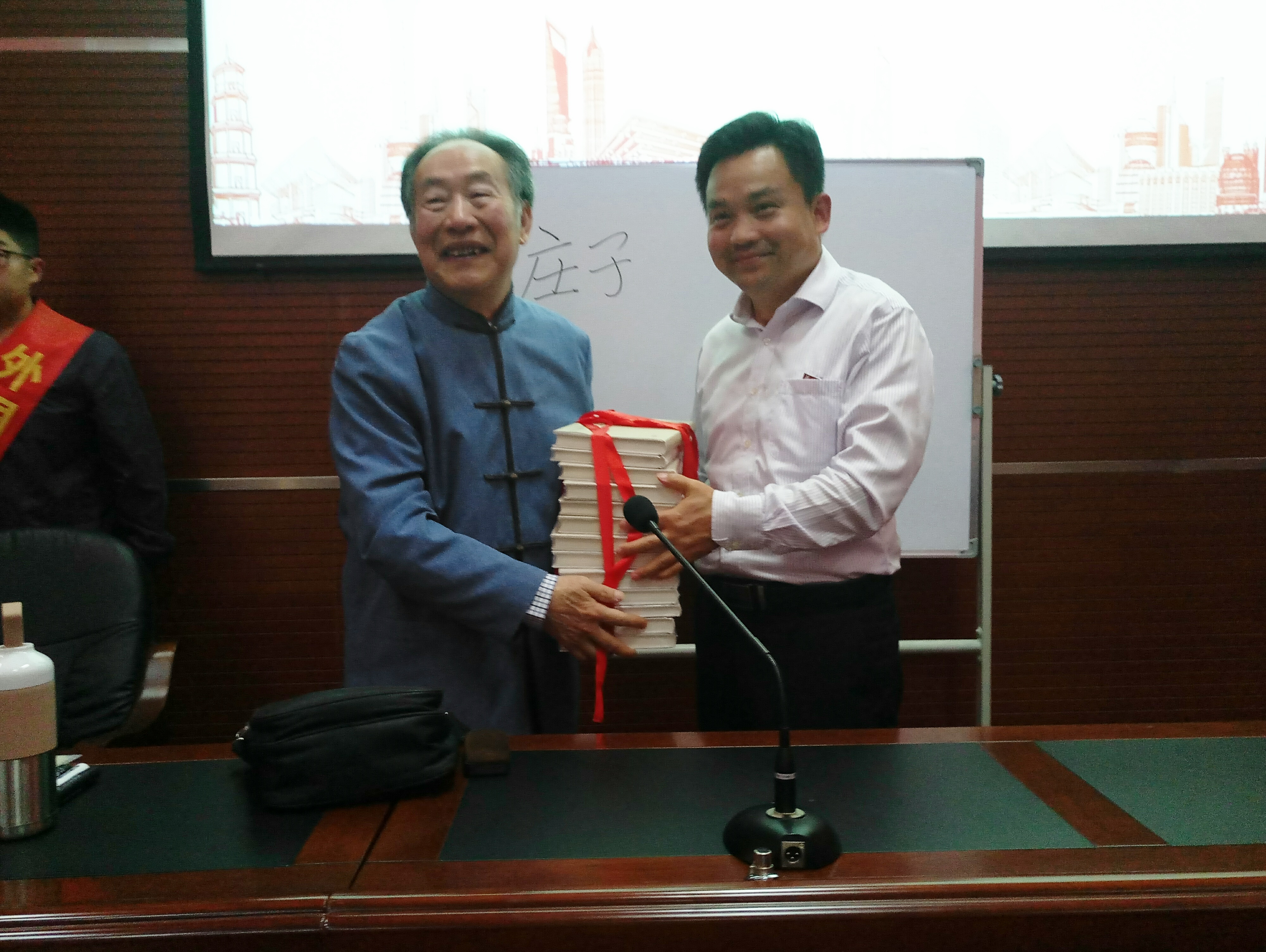 讲座开篇,周教授提出:“有人的地方就有文化,譬如长江文化、泰山文化等等,因此文化得以源远流长。”然后谈到,中西方在交往过程中的差异,如西方推崇等价交换,中国崇尚礼尚往来。而后周教授更是大篇幅侃谈中国传统文化,从古代社会制度、人物等方面详尽阐述他的独到见解。讲座尾声,到场同学提出自己的问题,周教授都一一详细耐心解答,收获掌声一片。最后,周教授赠予外院其自撰书籍--《十五堂哲学课》以纪念此行,而后陈伟民书记代表外院回赠周教授由外院教师主编书籍《你好,福建》,到此讲座划上圆满句号。