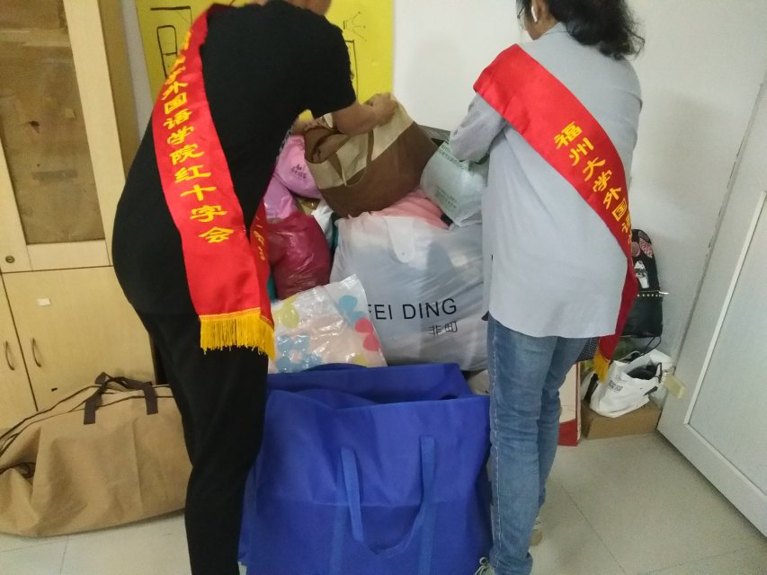 红十字会带领全体大一部员于2018年4月27日晚九点四十五分在13号楼进行本月的旧衣物回收活动。