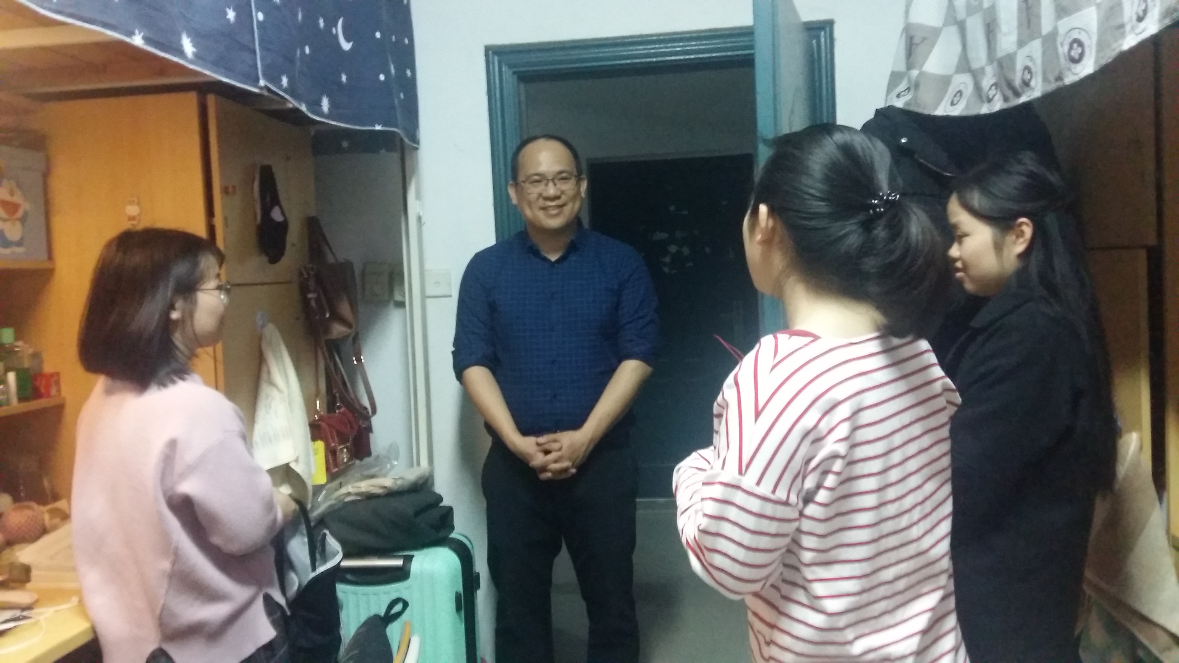 党委副书记王三强在辅导员刘燕老师和学生会干部的陪同下走访了本院学生宿舍,并与同学们进行了亲切交谈。