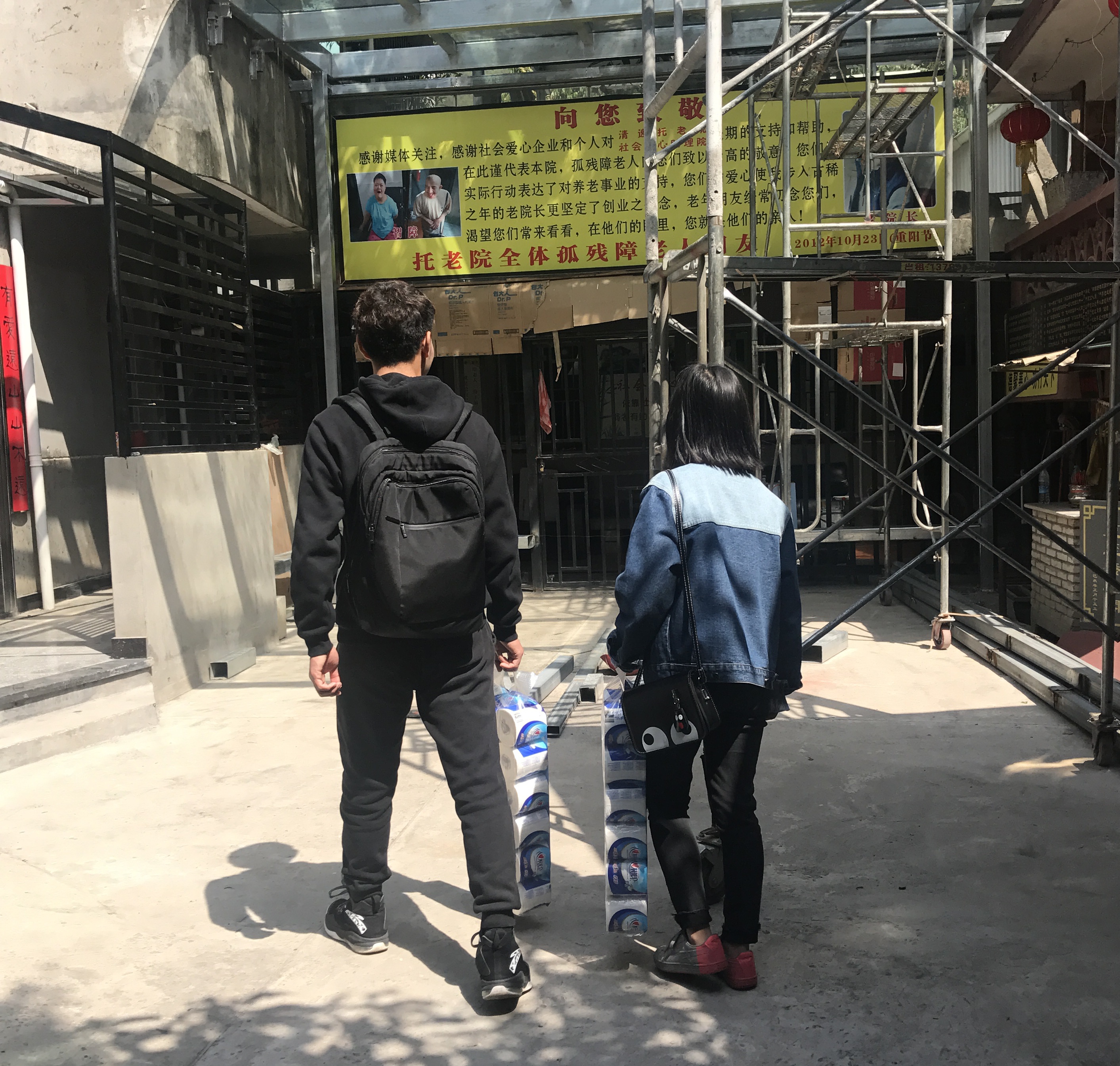 九点半,志愿者们到达托老院。一进门,他们就拿出为老人们购买的纸巾,老人们开心地收下了“小礼物”,脸上充满着感动。由于正在修筑新的遮雨棚,整个托老院略显杂乱。志愿者们也没有闲下来,一部分的人陪老爷爷老奶奶促膝长谈,另一部分人则帮助搬运物资。临近正午,志愿者们来到托老院的厨房,帮助护工阿姨准备午饭,洗菜装饭,在忙碌中体会志愿服务的快乐。