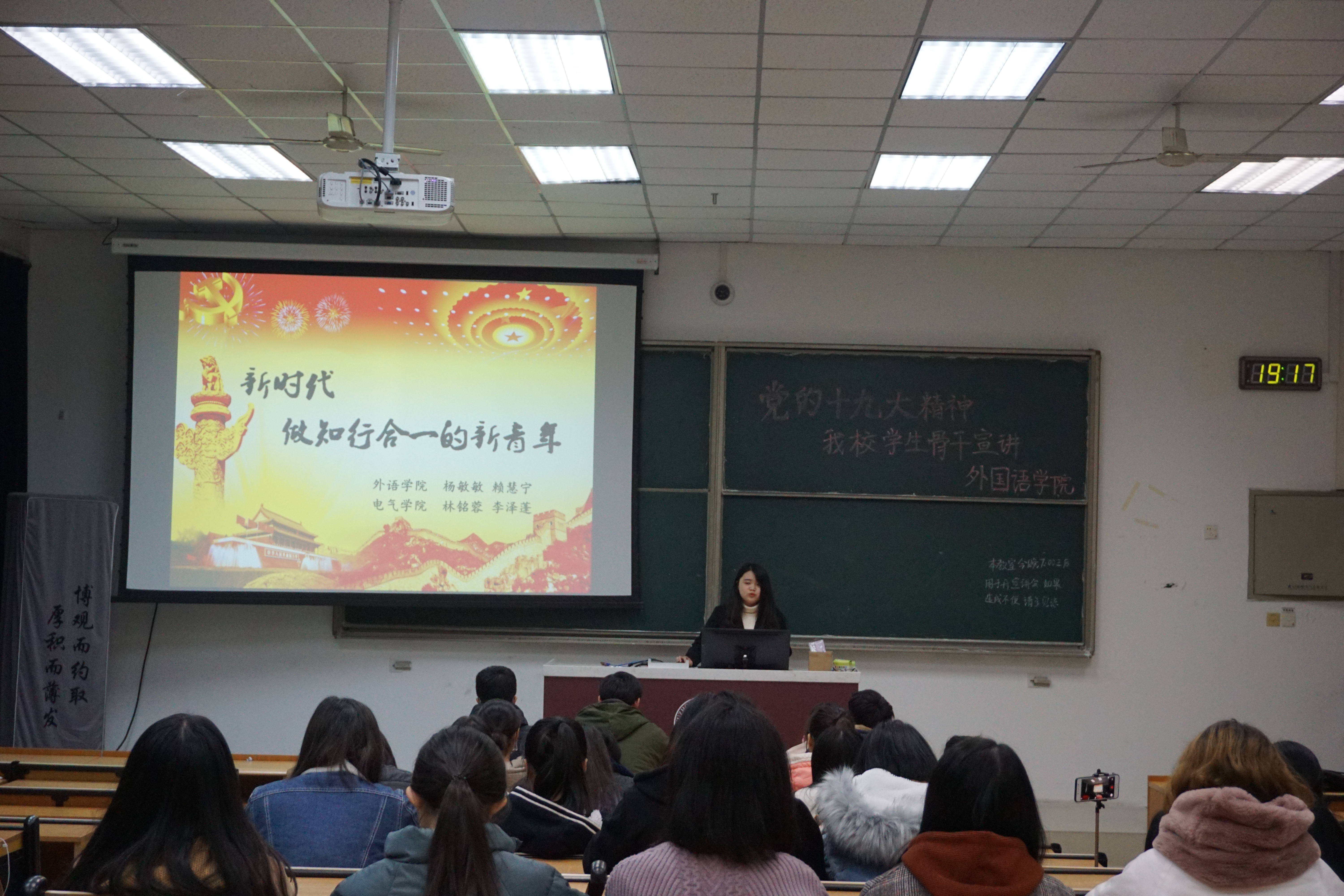 本次宣讲会为同学们解答了何为知行合一的新青年,并号召同学们向习近平总书记学习,践行十九大精神,具有一定的积极意义。