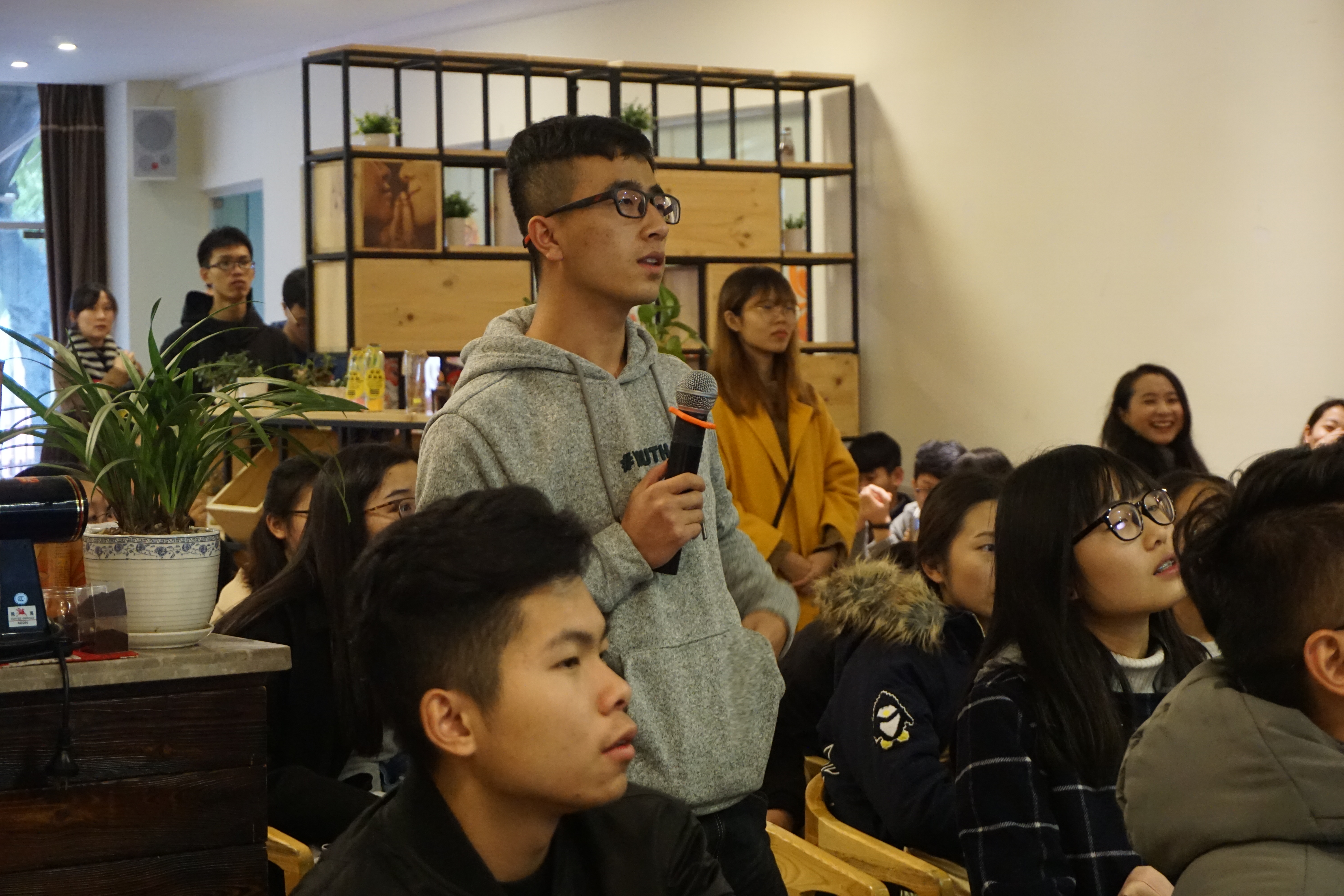 本次交流会分为两个环节。第一个环节为项目简介。参加本次寻找创业拍档活动的队伍上台为本队伍的项目做介绍说明,时间为5分钟。在介绍说明结束后,对该项目有兴趣的同学或者老师可以针对项目内容自由提问。共有来自数计学院、物信学院、环资学院、电气学院、法学院、马克思主义学院和电影天堂