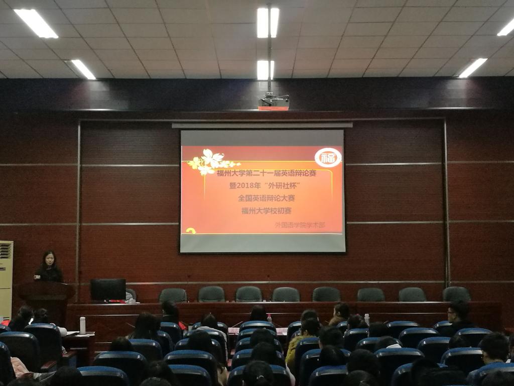 初赛内容为即兴演讲,选手辩题随机产生,每支队伍有两名辩手,自行分成正反两方进行辩论,演讲时间为2分钟。经过一轮轮唇枪舌剑,争锋相对,每名辩手就所抽取的辩题展开论述,侃侃而谈,向在场评委和观众展现其过人的思辨能力、应变能力以及良好的英语口语表达能力。在公布比赛结果前,由评委吕师涵同学上台总结评价各位选手的综合表现。她认为辩手们应在比赛中与观众有更多的互动,以此更好地将观点传递给听众们;除此之外,她希望辩手们能够更具自信,展现福大学子的非凡风采,并为同学们提出了更好的学习建议。
