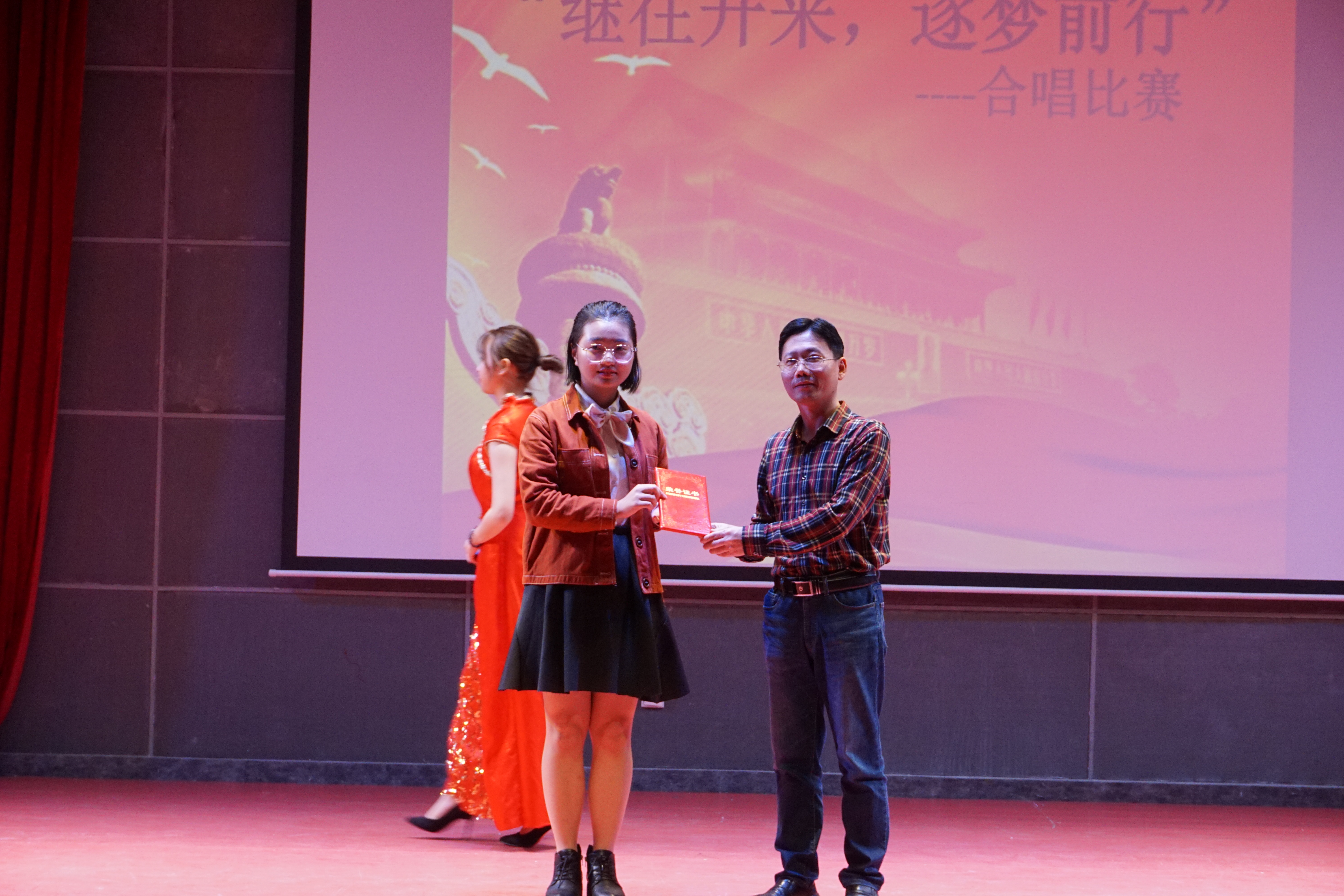 凭借优秀的合唱表演,15级日语四班获得了一等奖,17级德语五班、15级英语二班、16级德语五班获得了二等奖,15级德语五班、17级日语四班、16级英语二班、17级英语三班获得了三等奖,16级英语一班、16级英语三班、15级英语一班、17级英语一班、16级日语四班、17级英语二班、15级英语三班获得了优胜奖。获得创意奖的是16级英语三班,获得人气奖的是15级日语四班。