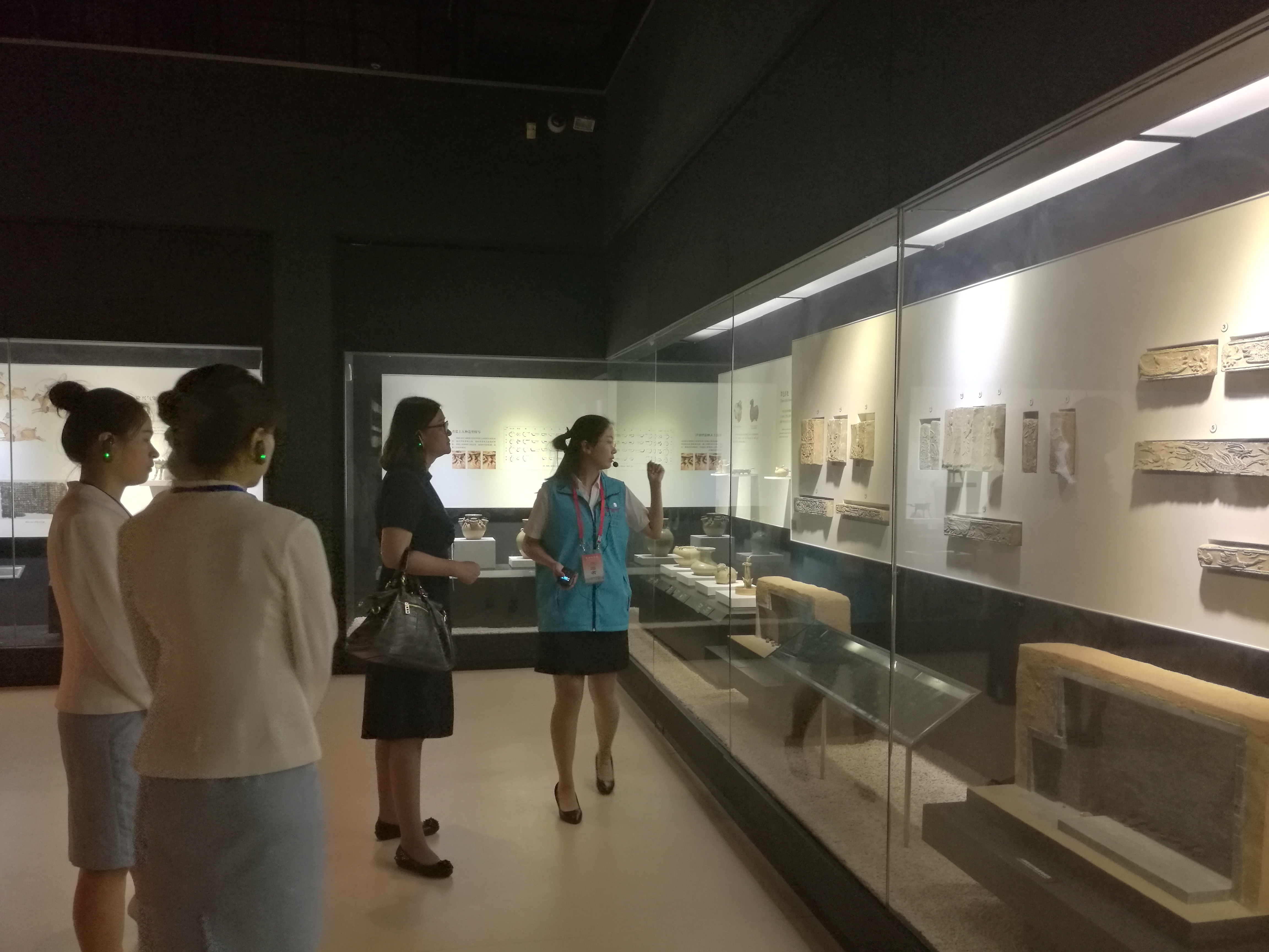 的志愿者们显示出专业的业务能力,虽然是在校研究生,但已有独立承担讲解任务的能力。她们主要负责讲解、现场接待、引导与答疑,为来宾们介绍了海上丝绸之路和福建古代文明之光展厅。在介绍宋代科技部分时,队员张文详细介绍了在世界科技史上有着重要地位的水运仪象台;在介绍主持建造水运仪象仪的福建人苏颂(中国历史上著名的天文学家、物理学家、机械学家,植物学家、药理学家,还是当时著名的文人和大臣,宋哲宗时拜相)时,为方便外宾理解,张文将他比作中国的达芬奇。志愿者们还为来宾介绍了从国外输入、见证福建繁荣海外贸易的孔雀蓝釉瓶等文物。