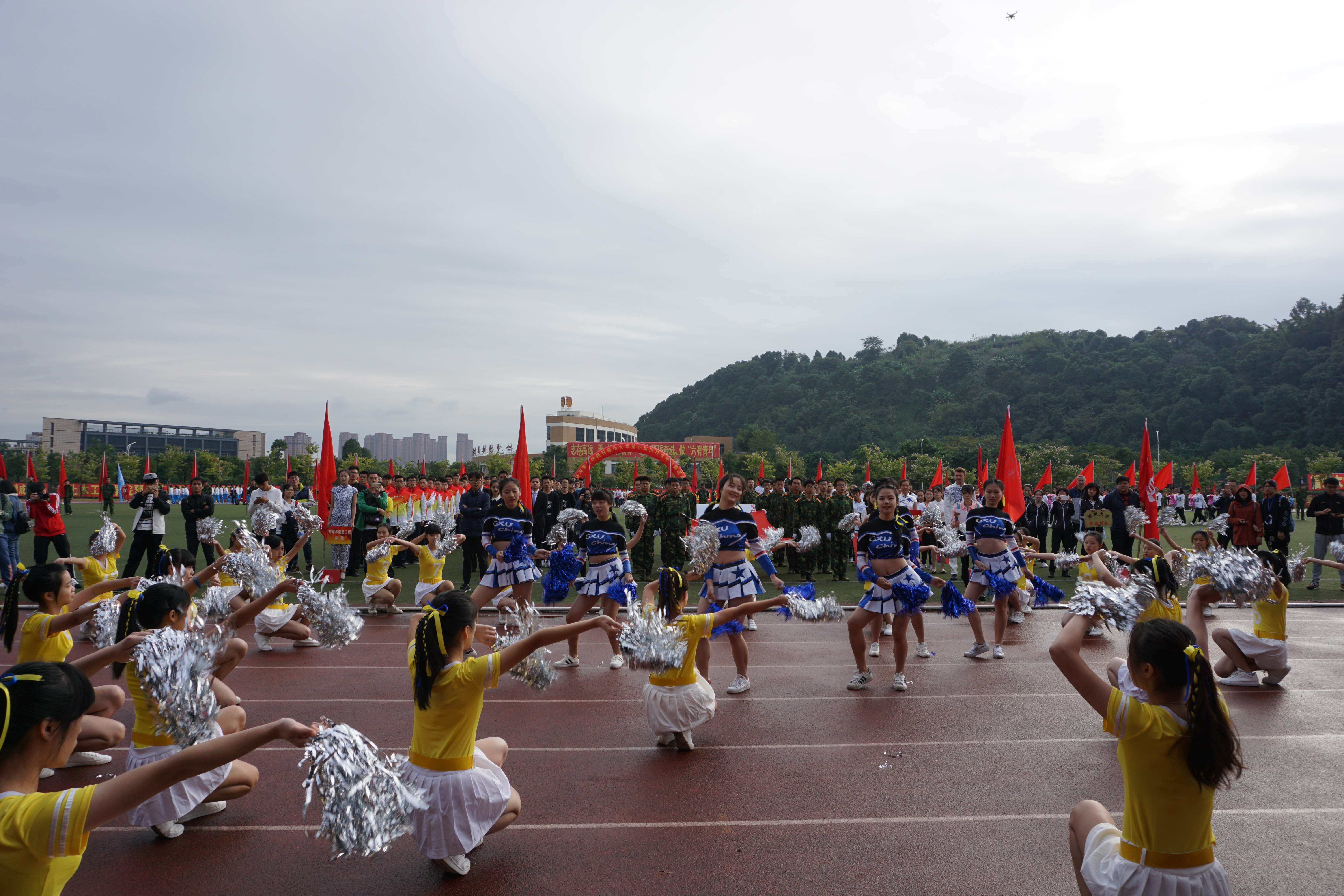 代表队在学院团委书记林昕老师等的带领下入场亮相。队列中36名同学身着青春亮丽的裙装,迈着矫健轻快的步伐,高喊冲震云宵的口号,挥舞手中的花球,以热情活跃的姿态承载外院学子对校运会的热切期待;方阵行进至主席台前,36朵外院之花跳起健美灵动的啦啦操,舞出了外院学子的精彩与活力;而舞蹈最后如魔术般展开的书有“弘扬长征精神,争创校运佳绩”十二大字的横幅,更是表明了外院学子将以着钢铁般的意志和精神,自信勇敢,团结合作,在此届校运赛场上争创佳绩的决心。轻盈大方的舞蹈与精心巧妙的编排为全校师生带来了精彩的视觉感受,成为开幕式上一道绚丽的风景线。