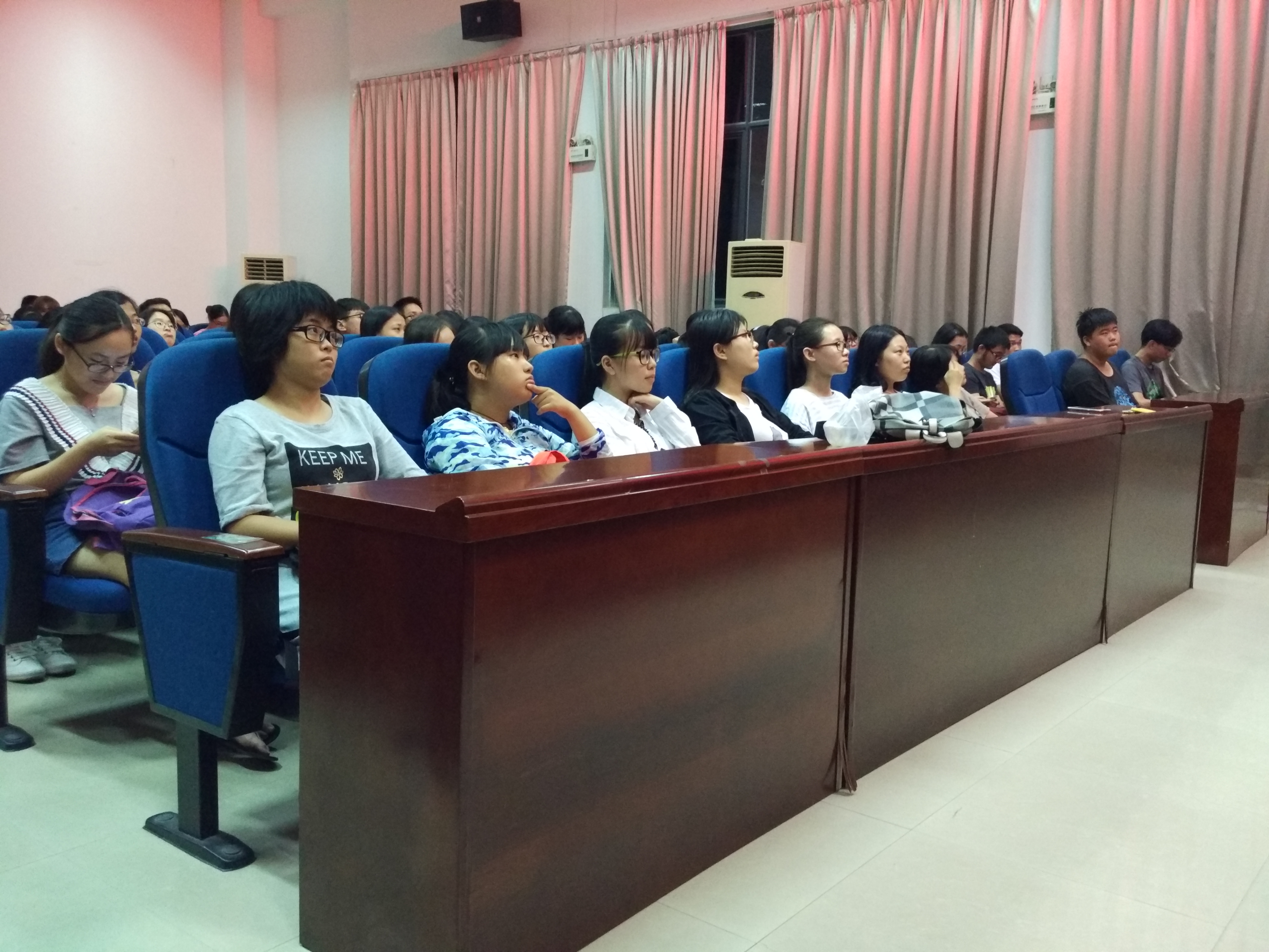 晚7时许,宣讲会开始,外院文化部、学术部以及体育部等19个部门的代表按照宣讲会前抽签的顺序依次上台对各自的部门作出精彩的宣讲。各宣讲人都细致介绍了其所在部门的主要职能、精品活动及发展规划,让同学们对学生会有了一个更加全面、系统、具体的了解,在演示文稿的配合下,努力为新生勾勒出对部门的最初印象。在各部门的积极准备下,宣讲会现场气氛被一次次推向高潮,台下的新生听众们认真聆听,对每一位宣讲人都不吝啬自己的掌声。在掌声中,新生们也积极寻找合适自己的部门,听取老生们的建议选择自己最热爱的工作,并期待着在未来能为部门、团委学生会乃至外国语学院创造出更多的精彩。宣讲会一直持续到晚九点半左右。