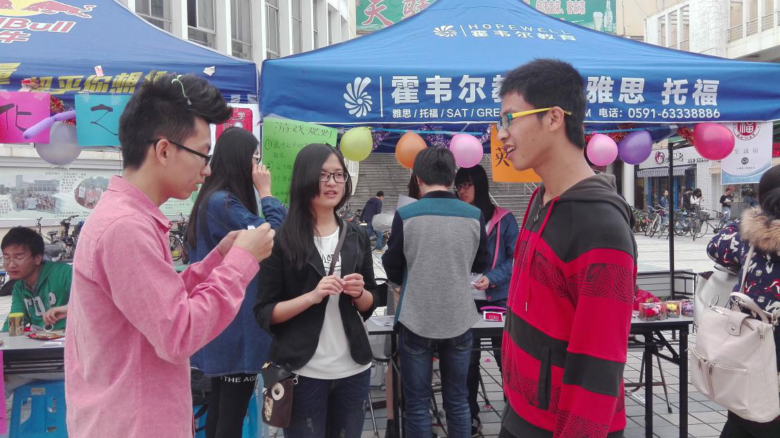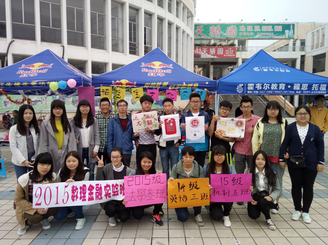 2014级英语3班团支部携手2015级法学3班、2015级机制5班与2015级数理金融实验班,于4月9日在青春广场共同举办“福宝宝文化之旅”主题闯关活动。
