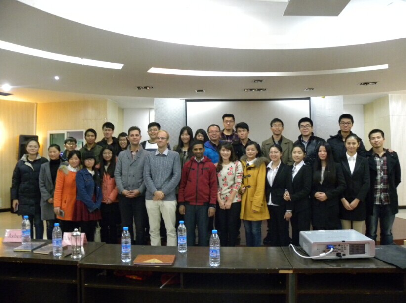 本次活动的一大亮点是现场沟通和师生互动,活动现场随着接连不断、看点缤纷的观众提问达到了高潮。在该环节中,面对在场研究生们各式各样的问题,两位外籍老师热情地给出了详细的解答。当被问及自己的课余生活时,Huether老师饶有兴致地聊到,自己课余时间喜欢打打球、看看书,有空约上三五好友喝喝啤酒。而谈及校园活动与课堂教学方式,Asher老师也有自己的看法。他认为,学生活动应该多到户外走走,并提倡开放式的课堂教学,鼓励学生培养创新能力,学会自主学习。除了主讲的两位外籍老师,来自土木工程学院的外国留学生们也来到现场与研究生进行了积极的交流。来自尼泊尔的留学生代表亚当十分开心地表示,中国朋友的热情与友善让他在异国他乡感受到了别样的温暖。