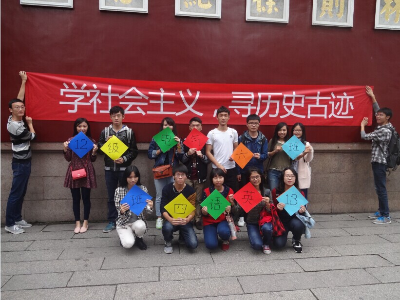 13级英语4班携手12级电气6班,组织班级同学前往福州市三坊七巷参观林则徐故居,新四军办事处故址等地方,以期借由先辈们所传达的可贵精神,加深同学们对社会主义核心价值观的认识。