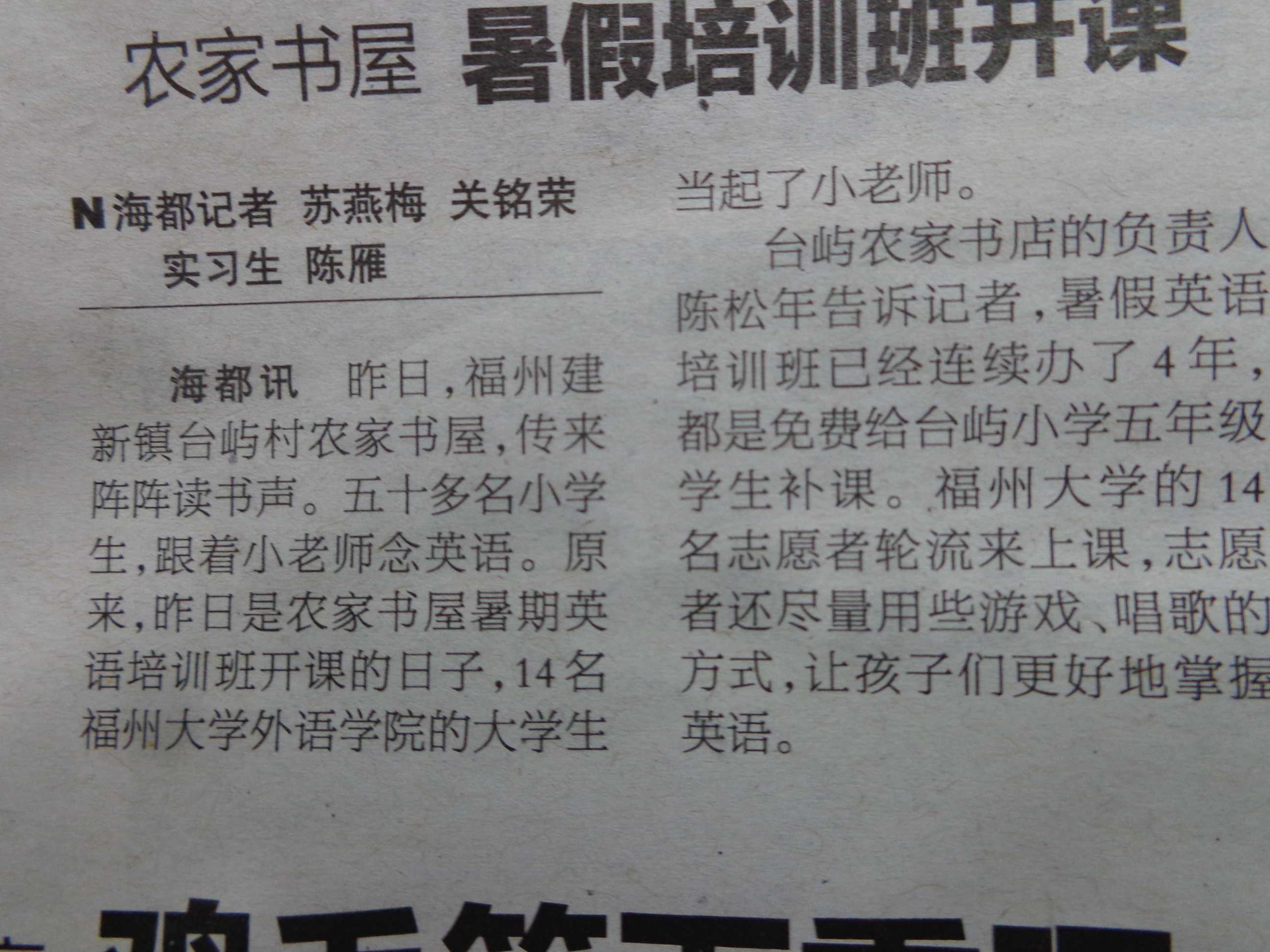 的志愿者们准时来到台屿农家书屋开始两个多小时的英语辅导。今天已经是此次农家书屋暑期社会实践活动的第四天,孩子们和志愿者经过几天的相处已经逐渐熟悉起来。今天,志愿者们一走进书屋便看到小朋友们坐在各自座位上睁着好奇的双眼打量着进来的小老师们,神情很是期待雀跃。