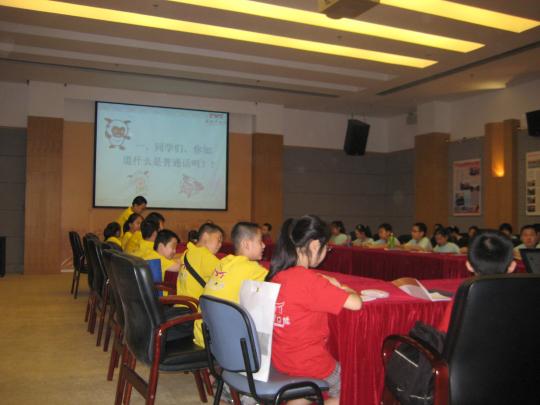 第二天的小朋友们将接受的是形体与普通话的基础教程。在上午的形体课上,小朋友们认真学习着老师展示的形体动作。而志愿者们也认真听课,尝试着把老师展示的形体动作做到规范,以便在今后的形体课上为小朋友们进行正确的形体指导,为老师们分担工作。形体课结束后,小朋友们继续接受普通话教程。虽然普通话的教授志愿者们不能参与其中,但志愿者们也没有忘记自己的职责,依旧在一旁听讲,关注着小朋友们的学习情况。在最后的展厅指导中,志愿者们也是积极主动的协助小朋友背诵讲解词,并将平日里自己的一些背诵的小技巧与小朋友们分享。