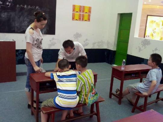 红十字会暑期实践队的志愿教学仍在继续。当晚的课堂教学内容是趣味数学,由陈晓茹志愿者担任主讲。鉴于学生参与程度不一,为了达到更好的教学效果,此次教学安排志愿者郑培娥、郑巧云及何晓婷担任助教,在讲台下帮助小学生学习。