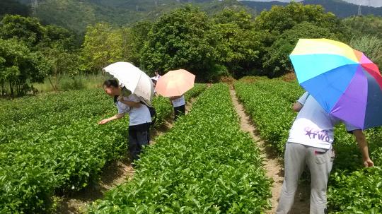 12级英语2班暑期实践队伍一行人冒着酷暑如火如荼地进行着暑期实践活动——深入茶园,帮农民伯伯摘采茶花,了解他们的故事。