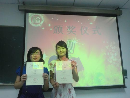 的吴雪晨、王语嫣斩获一等奖,孙芷芸,林语嫣获得二等奖,孙倩以及管理学院的梁瑜、卢延、彭惠芳获得三等奖,此外还评选出了最佳辩手、最佳语音、最佳台风和最具表现力奖。