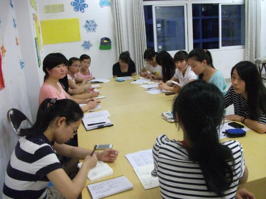 期间向建新镇台屿小学的五年级学生提供英语授课并开办主题班会活动。付露着重提醒志愿者在每次授课前应做好充分准备工作,如认真撰写教案,与前一天上课的志愿者做好教学内容的衔接工作,以及如何应对课堂上的突发状况等等。针对个别志愿者的提问她也提出了自己的建议。此外,她还提出了一些必要的注意事项,例如在支教志愿服务前要自备零钱用于乘车,自备矿泉水以防口渴等等。这些细节虽然琐碎,却是保证志愿服务顺利进行的要素之一。在介绍完一系列注意事项及方法后,付会长邀请去年曾有过支教经验的大二年级志愿者林军莺为大家分享她的支教心得,无论是授课技巧,还是如何调动课堂气氛,她都毫无保留地给出自己的实际经历和建议,在场志愿者也一一记下这些经验之谈,为支教服务认真准备着。