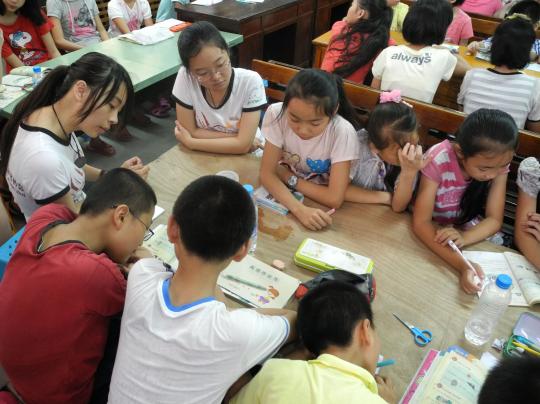 上午的授课时间一到,经过精心备课的志愿者林淑文、刘芸云开始了她们的授课。除了基本授课,志愿者还通过游戏、教授英文歌等方式调动了课堂气氛,孩子们积极响应、参与其中,英语教学有条不紊地进行着。两小时后,志愿活动在一片融洽和乐的氛围中结束。