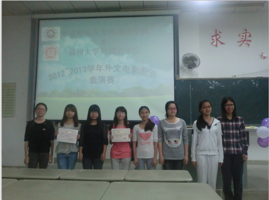 两点整,观众在工作人员的组织下有序入场。随后,主持人致开场词,表演赛正式开始。首先上场的是福大日语组,选手们用日语分别和现场观众做了自我介绍,清晰的吐字和地道的音准,立马吸引了观众的注意力。选手们时而紧张,时而慵懒的语调,准确地表现出各人物的特色,引得场下观众连连笑声。接着上场的是师大日语组,表演片段是为大家所熟知的《蜡笔小新》,其中尤其是蜡笔小新的表演者惟妙惟肖地再现了人物憨厚的特点,博得阵阵掌声。之后上场的是英语组,福大组和师大组交替出场。选手们的真情演绎使得台下的观众身临其境,意犹未尽,自发为其鼓掌喝彩,一次又一次将赛场气氛推向高潮。终于到了激动人心的颁奖环节,作为表演赛,并没有像以往赛制一样角逐出高低名次,而是根据每个小组的不同特色,颁发出奖最具人气奖,最具表现力奖,最具创意奖,最佳默契奖。相信每个人心中都有属于自己的冠军标准,或许这正是表演赛的特别所在。
