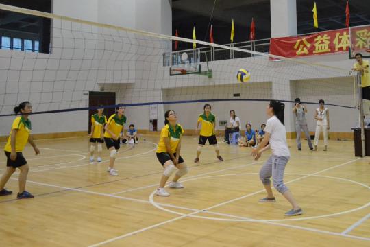 女子排球队从众多队伍中胜出,在决赛中与管理学院开展冠亚军争夺战。