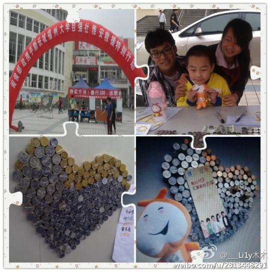 无论是在三区操场上一直默默为同学们扫去雨后积水的老妪,还是在点滴生活中不善言辞用平凡的行动关爱着女友的男生;无论是骨肉相连的亲人之情,还是同舟共济的同窗之情,都唤起同学们心底最敏感的触动,发现生活中点点滴滴的真善美。雅安地震后,闽侯邮政携手福大自强社开展雅安祈福募捐活动,一名6、7岁的男孩捐出自己两年的积蓄。大大小小的硬币,凑出了700元的祝福,却衡量不出小男孩无价的爱心。照片上,他含蓄腼腆的笑容,温暖了整个4月天。