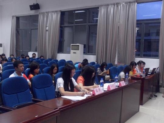 此次比赛邀请到李建新,陈丽娟,成琳担任评委。首先,由主持人介绍此次辩论赛的比赛规则。此次比赛由两人组成一支参赛队伍报名参赛,初赛采取即兴英语演讲的方式,每位选手在比赛前抽题并准备,演讲时间为2 分钟,每支队伍自行决定正反方,按队伍顺序进行辩论演讲,正反两方先后陈述观点,由评委给分。在所有选手演讲完毕后,取两名选手总分作为团队得分,按分数 高低,选出前7队,剩下一队由个人成绩在前16名但所在队未能进入前7的参赛选手组成第8队。比赛开始前,选手们为了能在台上表现的更加出色而积极准备 着,同时在比赛中认真学习他人的优点,完善自身。此次比赛考验的不仅是选手们的英语表达能力,更考验选手们的临场发挥和语言组织能力,对每位选手都是一次 很好的考验和锻炼。在赛场上选手不但仔细聆听对手发言,也积极寻找突破口表达自己的观点,信心满满地侃侃而谈,充分展现了当代大学生的风采。最终,共有八 位选手晋级到决赛。在决赛前,他们将得到专业指导英国BP辩论制的付磊老师的指导和培训。