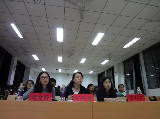 职业发展部主办的“职场达人秀”之职业生涯规划大赛在文1-404顺利举行。辅导员刘文婷老师、黄柑莲老师,就业指导中心赵艳莉老师作为评委出席此次比赛,学生会主席团成员及各部门部长作为嘉宾参与本次比赛。