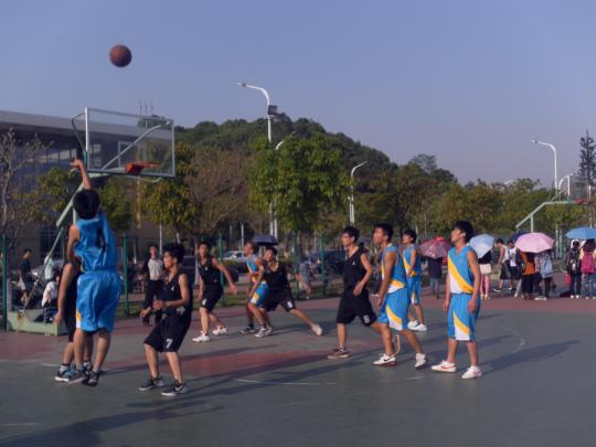 以小比分领先生物工程与科学学院。稍作休息后,双方又投入到激烈的比赛中。球队队员和啦啦队员的热情如当天下午的骄阳般滚烫,每次完美的配合、每个漂亮的投篮都引来赛场旁的阵阵尖叫。到了第四节,生物工程与科学学院篮球队依靠灵活的进攻领先于电影天堂