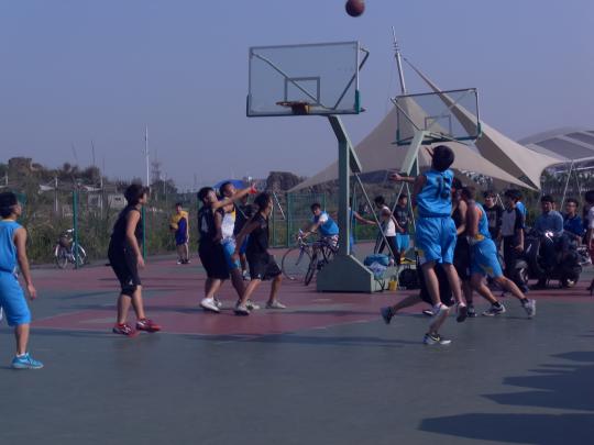 篮球队和生物工程与科学学院篮球队的对抗赛在三区篮球场展开。