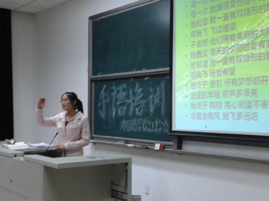 对于认为手语很枯燥这一看法。与此同时,培训也让所有人感受到了无声世界的别样美丽。随后的互动环节“你比我猜”同学们活学活用,纷纷应用起刚刚学的手语,现场气氛越发热烈活跃。最后,由校红十字会的陈久易同学带领大家学习手语歌曲,并一起进行手语歌曲表演。8时30分许,手语培训会圆满结束。