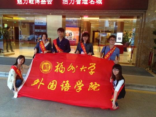 李婕、林姗姗、汤文军、王姿阳、陈冬冬等10名英语系的同学作为第十五届鞋博会的志愿者从福州来到晋江,接待来自美国、意大利、墨西哥、俄罗斯等多个国家和地区的嘉宾并作为他们的随行翻译。本次志愿者活动共持续了大约一周时间。