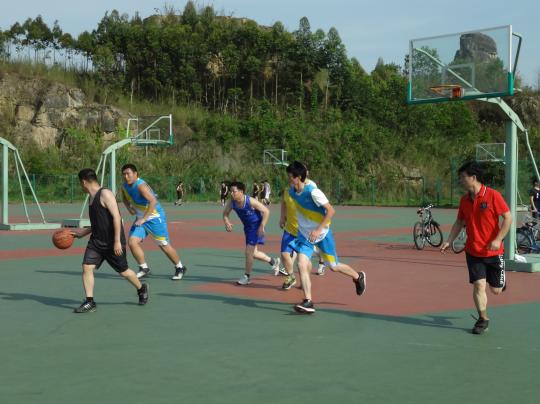 双方热身后,比赛开场,两队立即投入紧张刺激的比赛中。教职工队虽然在对篮球技巧的熟悉度上略微不如长期训练的学生队,但教职工们毫不懈怠,开场五分钟左右,双方比分持平。随后,众人的表现依旧精彩,而令在场的球员和观众都感到敬佩的是,教职工们的运球、过人和上篮等动作十分机敏灵活,表现得相当出色。一场比赛下来,教职工们即使体力有所下降,但仍旧奋力作战,不轻易放弃任何一个球。其中,周越老师多次的抢断、篮板球,刘旺老师积极上篮等都令众人印象深刻。学生们纷纷表示,通过这场比赛,他们在老师身上看到了坚持胜利的精神,受益匪浅。