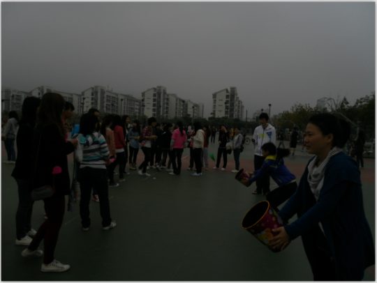 下午2时30分许,趣味运动会的班级系列赛紧接着拉开了帷幕。首先进行的是几人几脚的比赛,每组共六人参与,用绸绳将相邻两个人的脚绑在一起,比赛开始后,六人一起向前走向终点,用时越短者分数越高。赛前,每个班的同学都纷纷开始练习,在队员中寻找最有默契的六个人参与这项比赛。有的班级步调一致,默契十足,有的班级却略显生疏,加紧练习。整个赛场上“一、二、一、二”的口号声此起彼伏。几人几脚比赛结束后是背靠背比赛,两人一组背靠背运球并投篮。背靠背运球需要两个人配合默契,而投篮却需要技术加运气了。比赛中出现了许多出乎意料的结果。)最后进行的是跳大绳比赛,两人摇绳,六人依次跳进并跳出,线路为八字形。同学们一个接一个穿梭于长绳中,就像一场跳绳表演,看得大家眼花缭乱。她们娴熟的技巧和默契的配合赢得阵阵掌声。最终综合三项成绩,10级英语三班力压群雄夺得桂冠,11级日语一班夺得第二,11级日语二班位列第三。